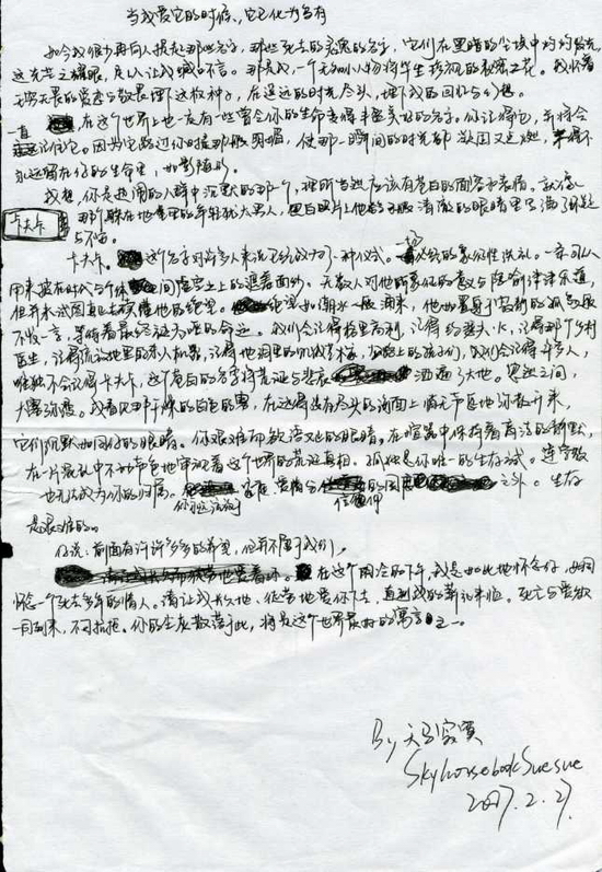 天马寂寞MM手写来稿两篇